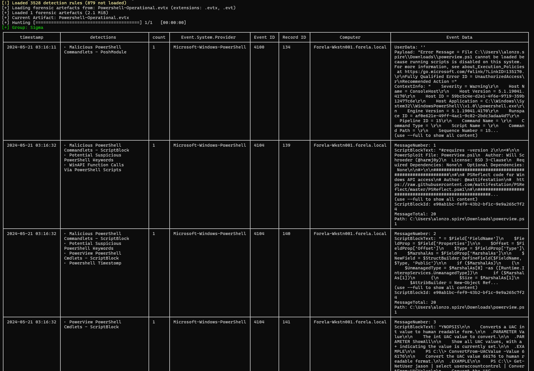 What this proves:powerview.ps1executed at2024-05-21 03:16:32 UTC.