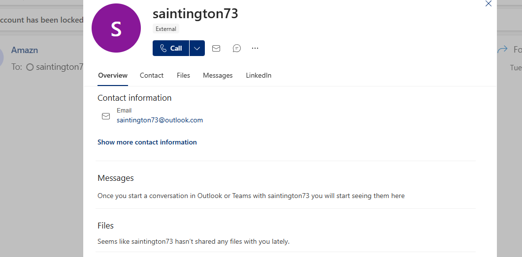 Opened the .eml in a mail client and clicked the sender badge to expand the full address.