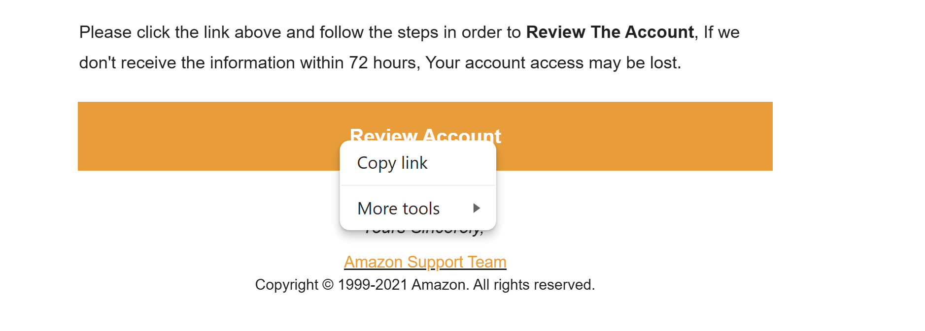 Copied the CTA link from the HTML anchor behind the “Review Account” button.