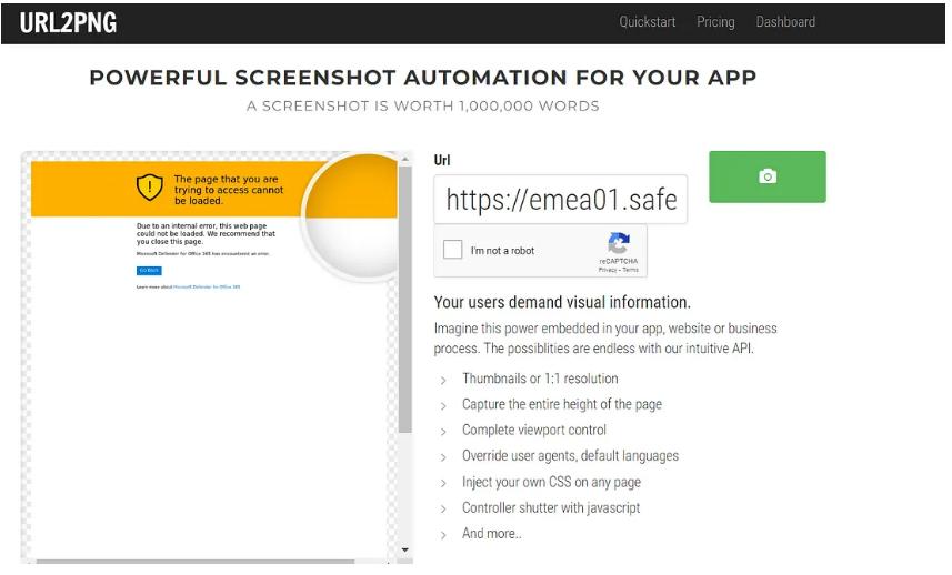 Pasted the CTA URL into URL2PNG and recorded the first heading shown on the rendered page.